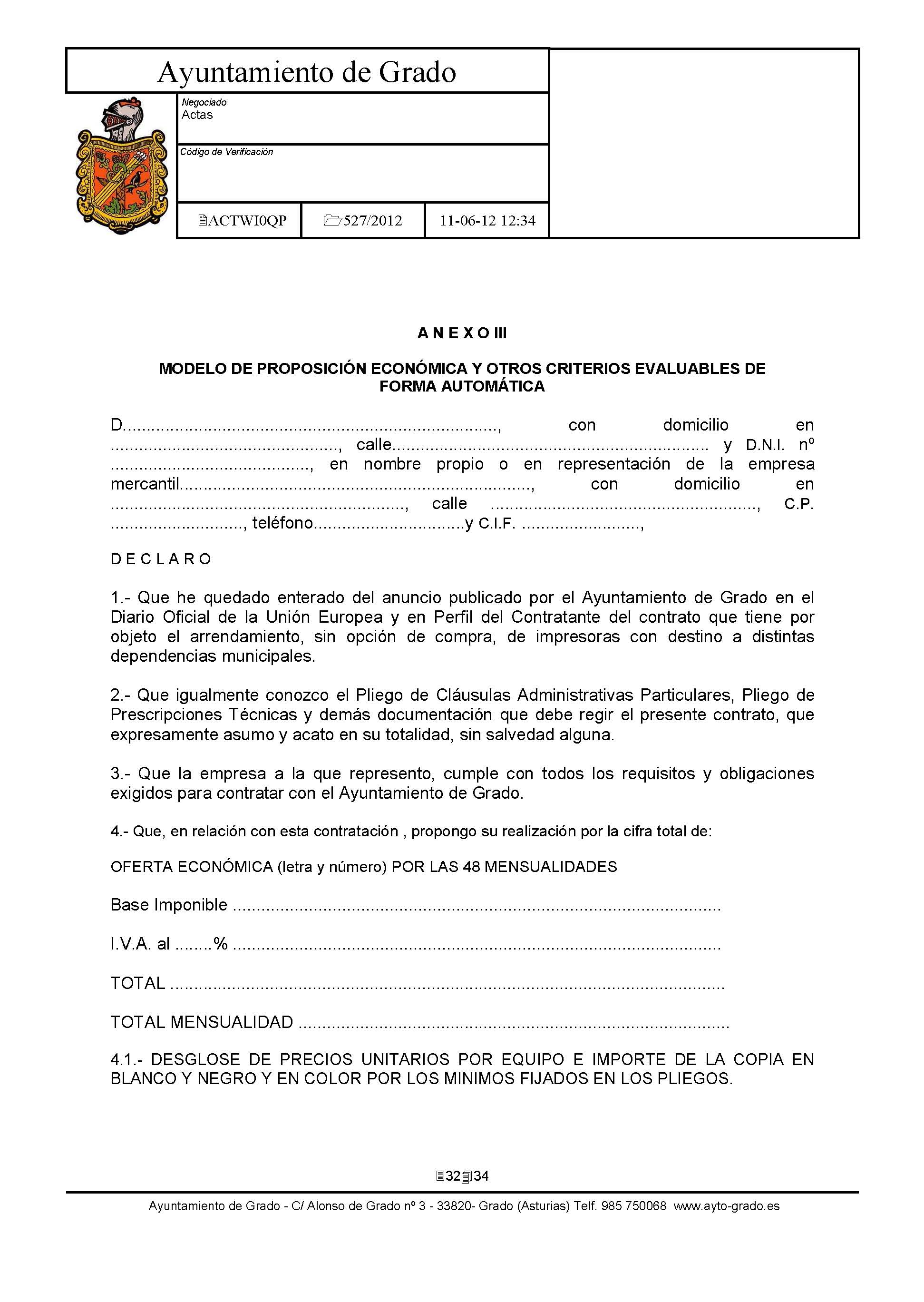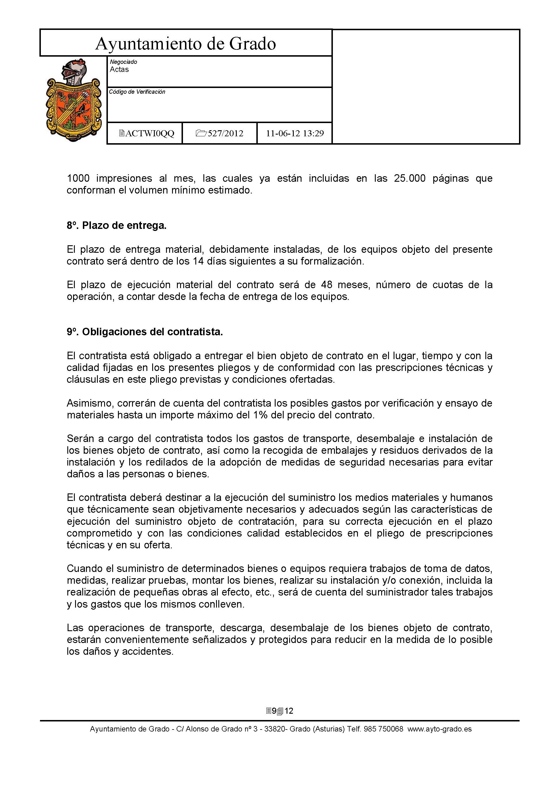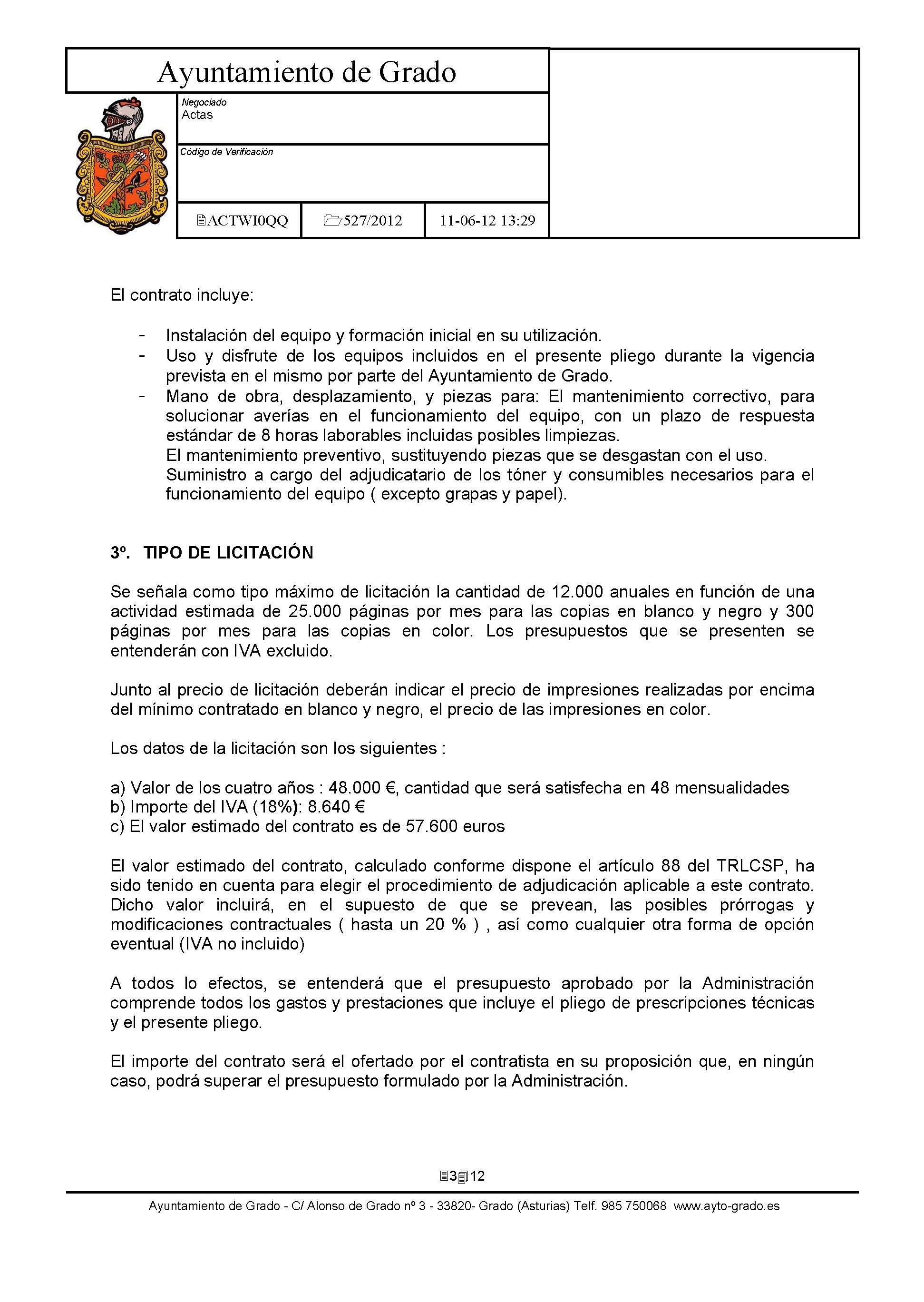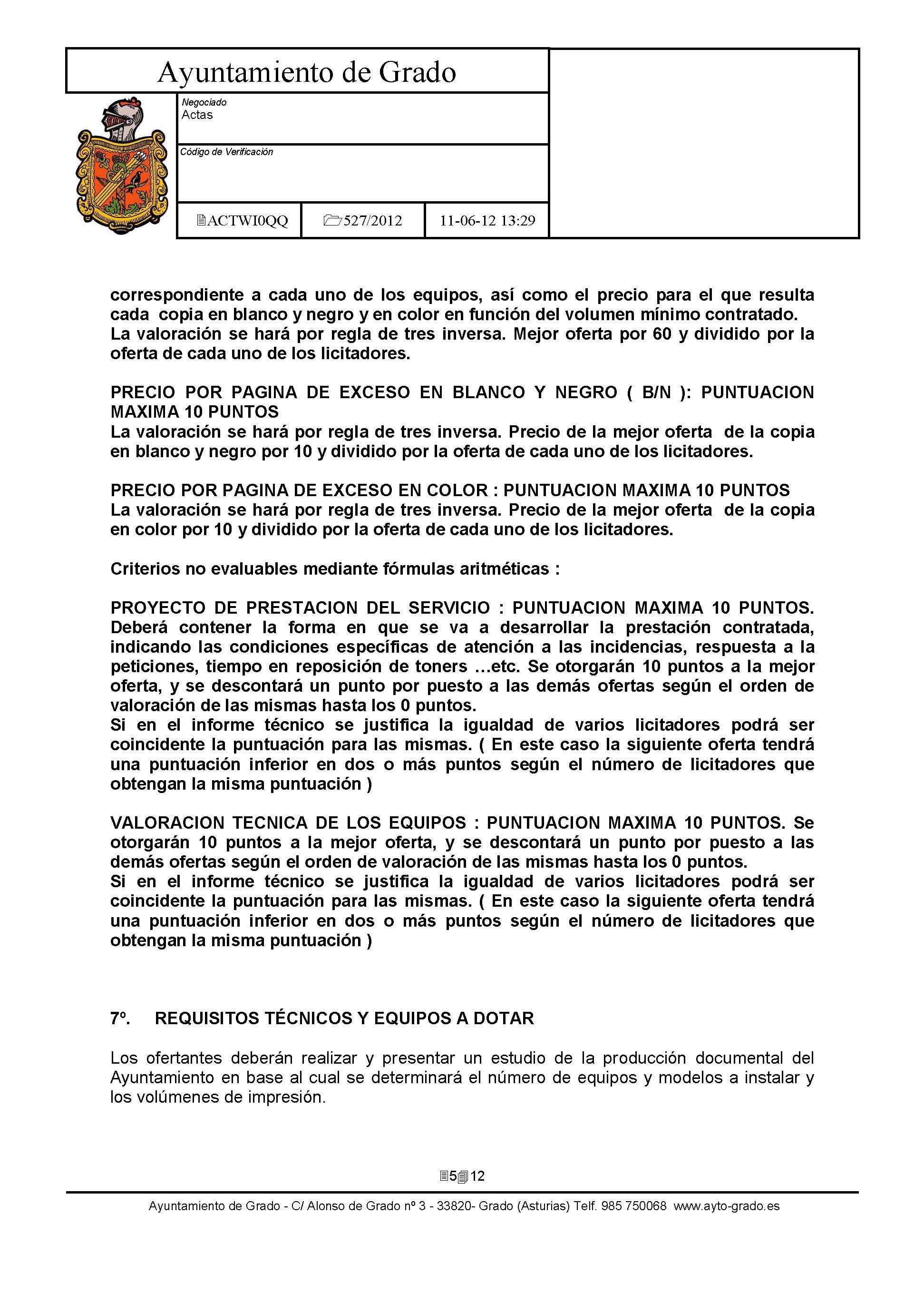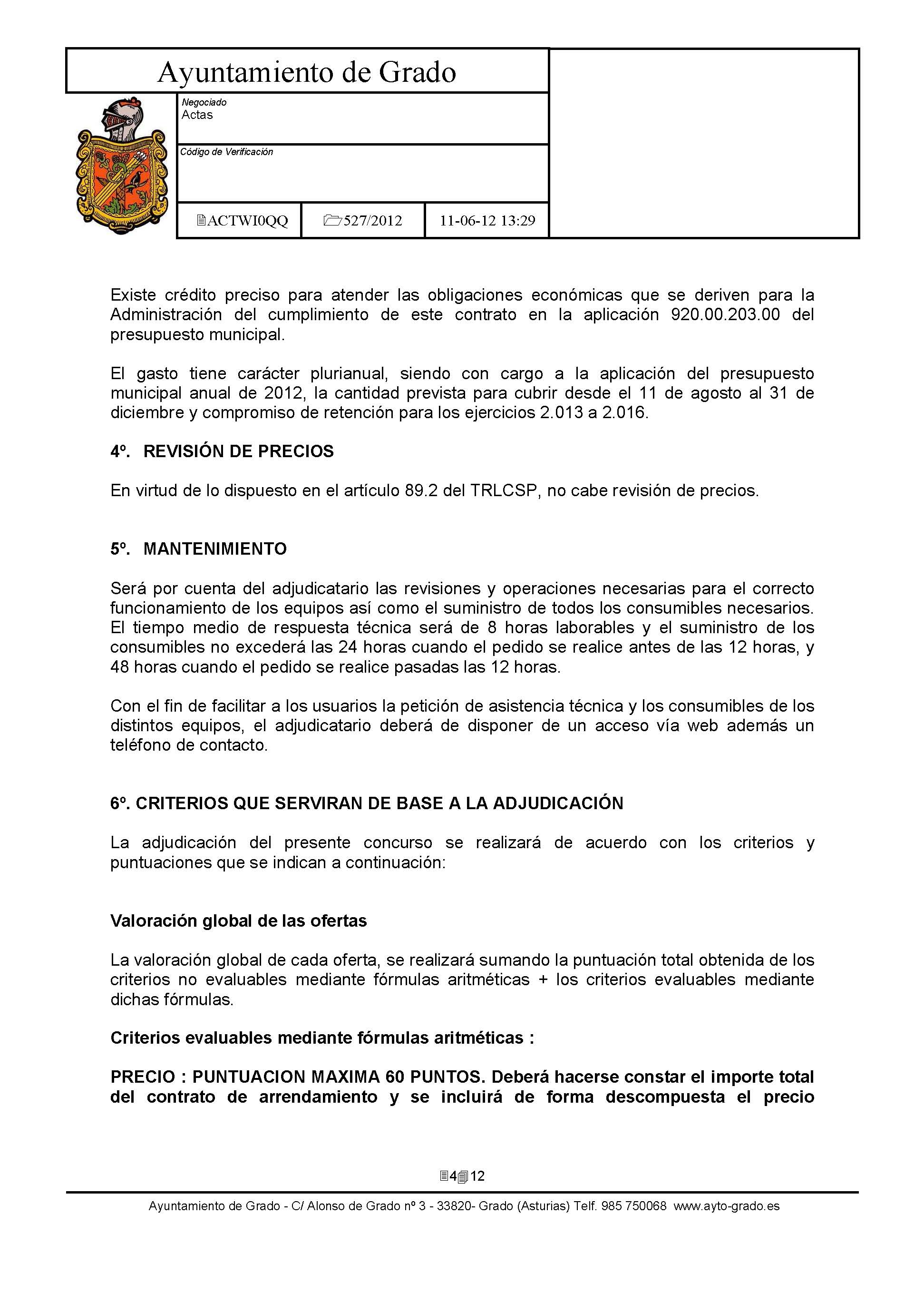 Arrendamiento sin opción de compra de Impresoras y Equipos Multifunción con destino a dependencias municipales. [Exp: 527/2012]