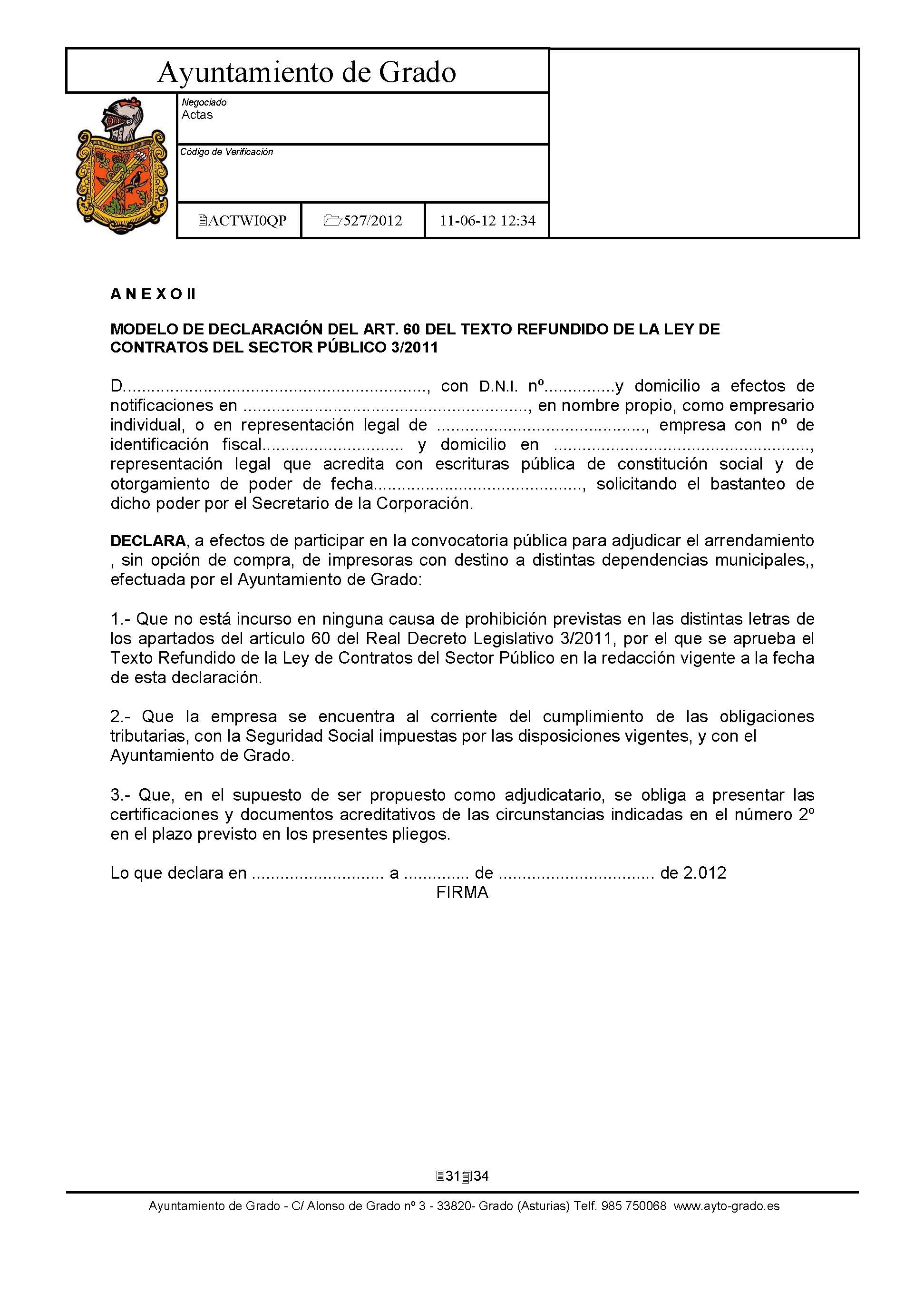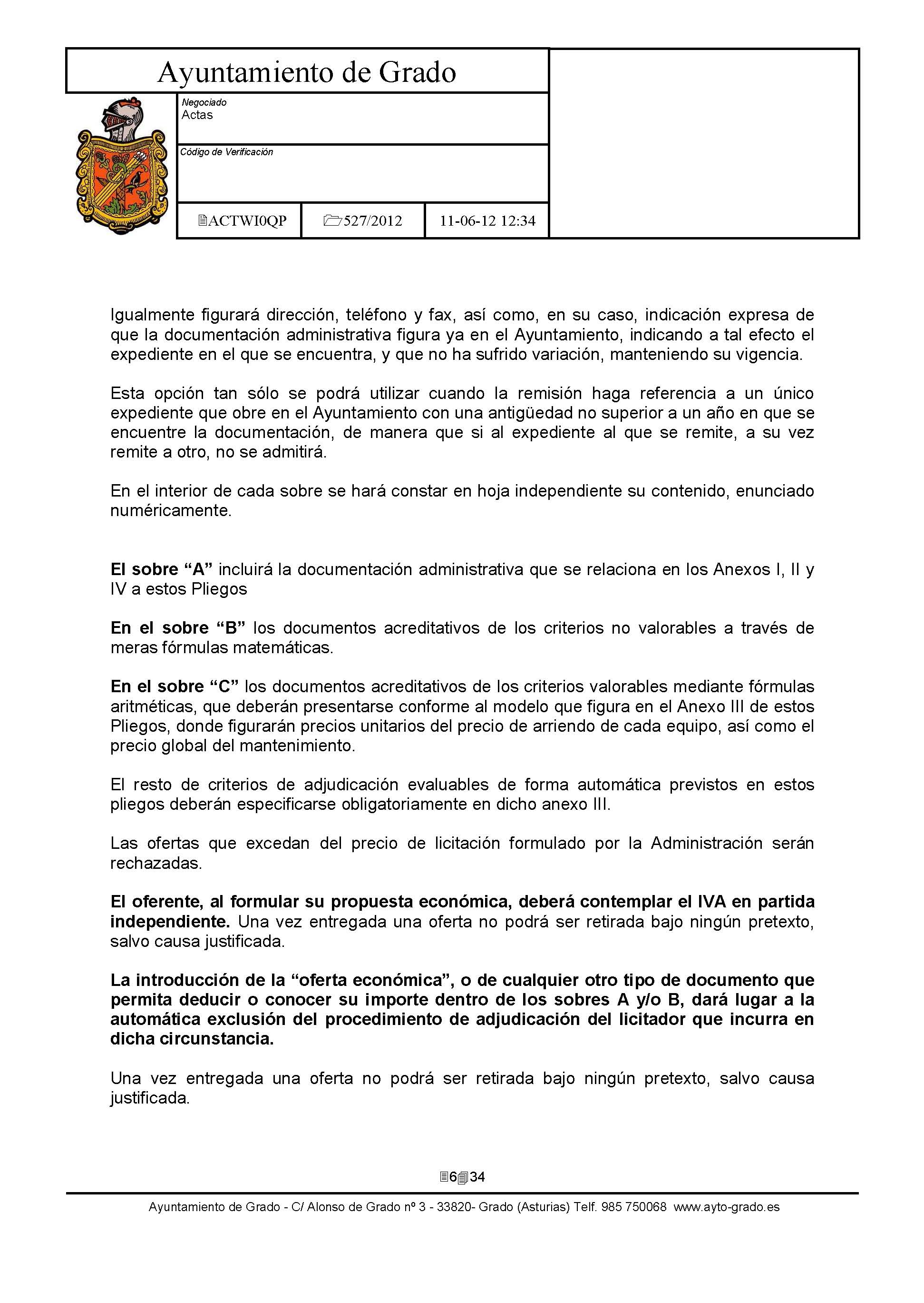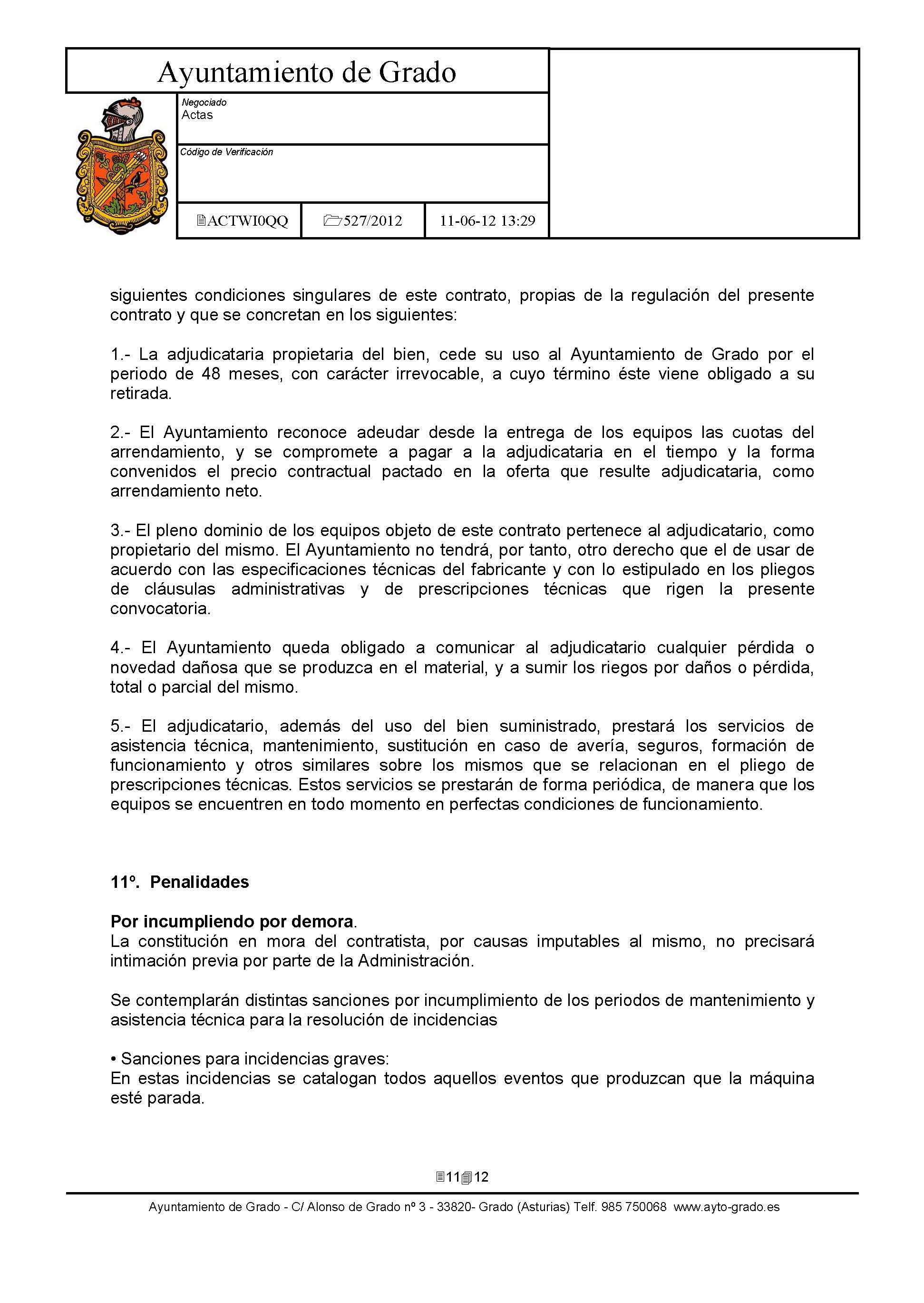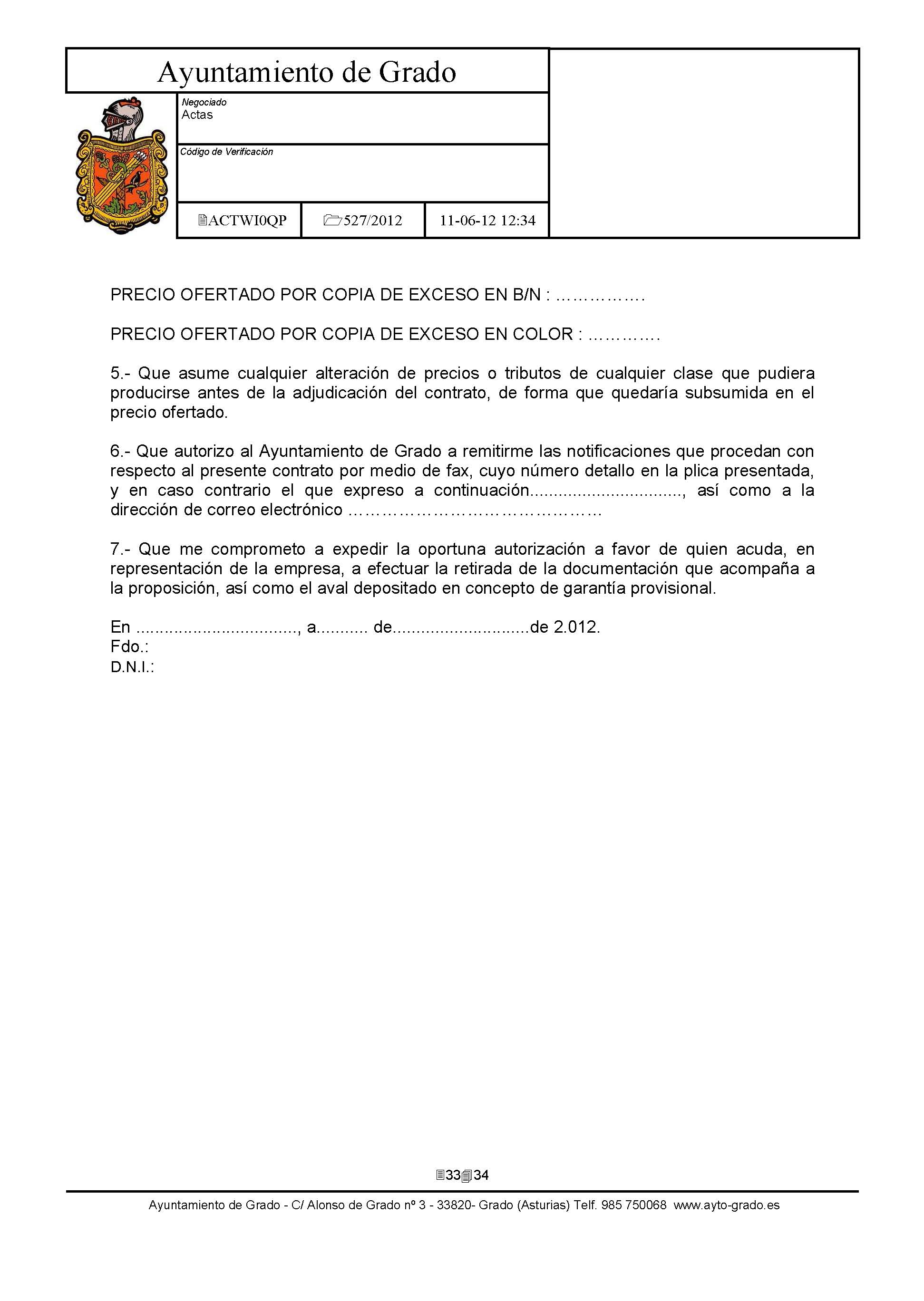 Arrendamiento sin opción de compra de Impresoras y Equipos Multifunción con destino a dependencias municipales. [Exp: 527/2012]