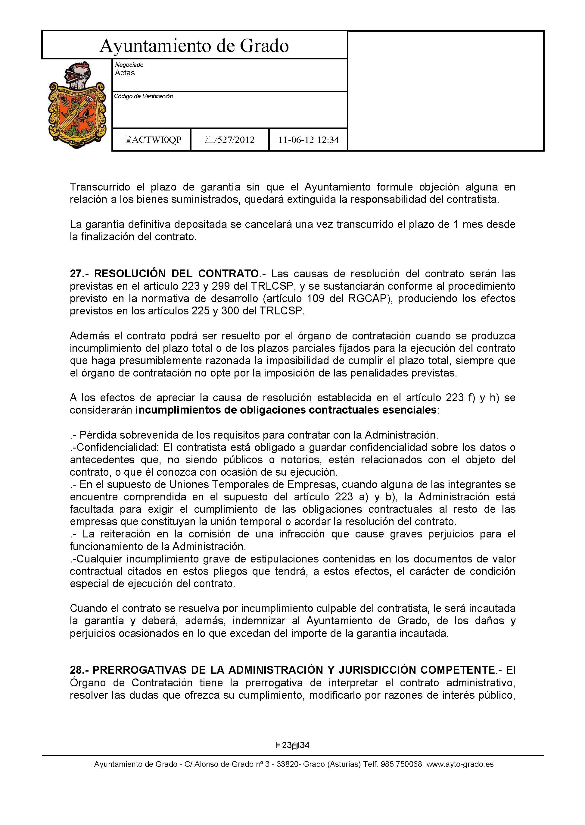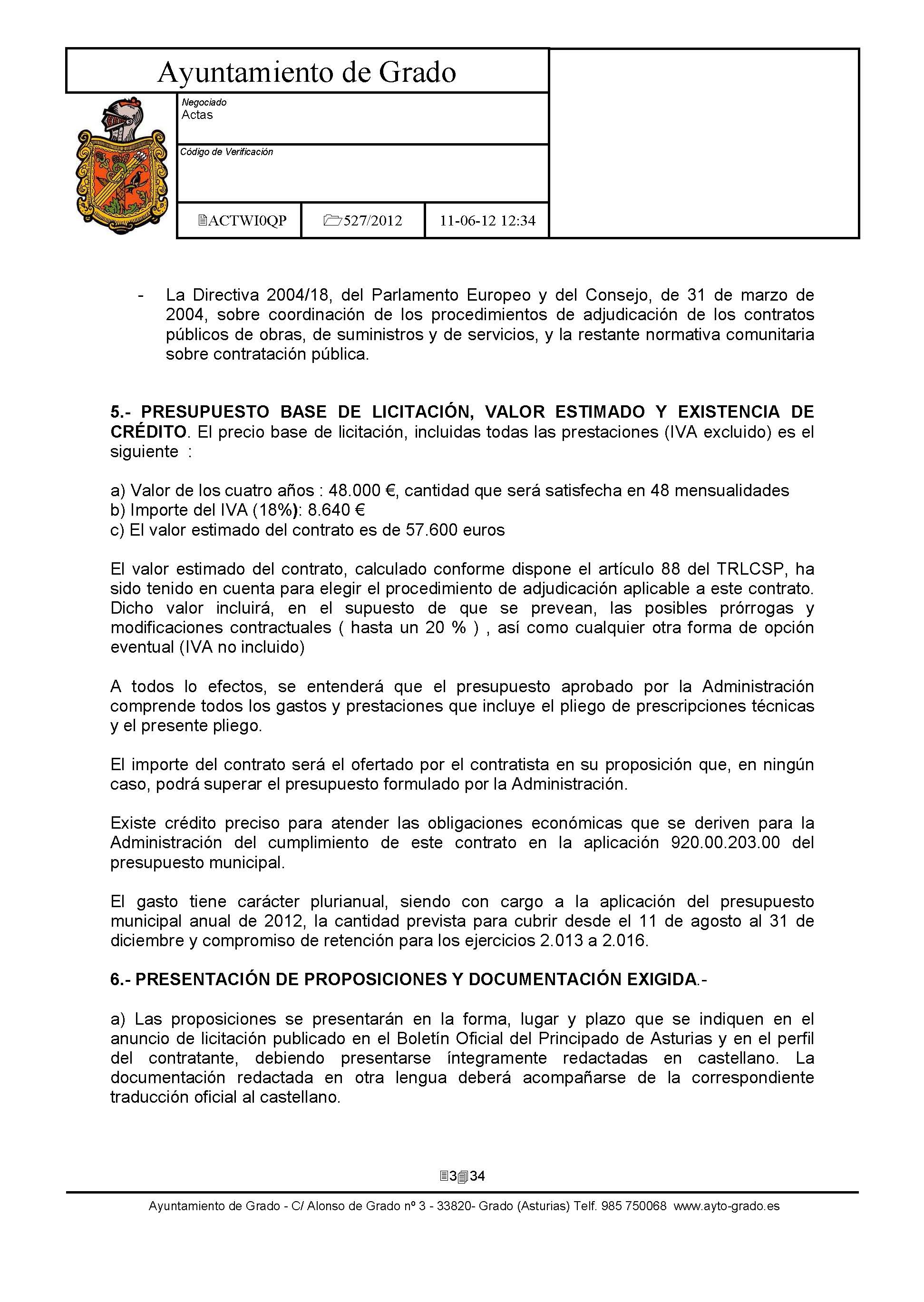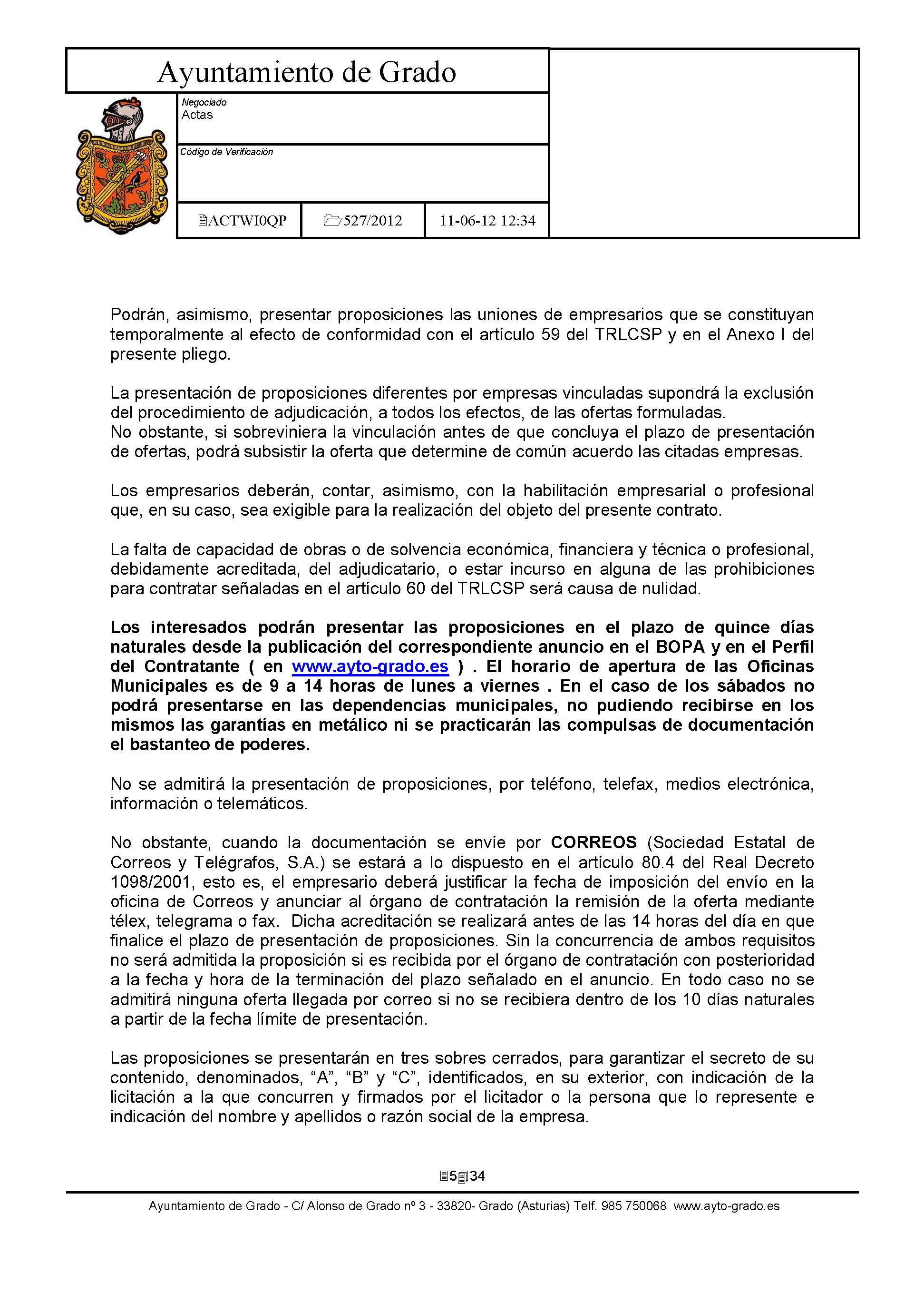- Pliego de clausulas administrativas: Clausulas Administrativas.