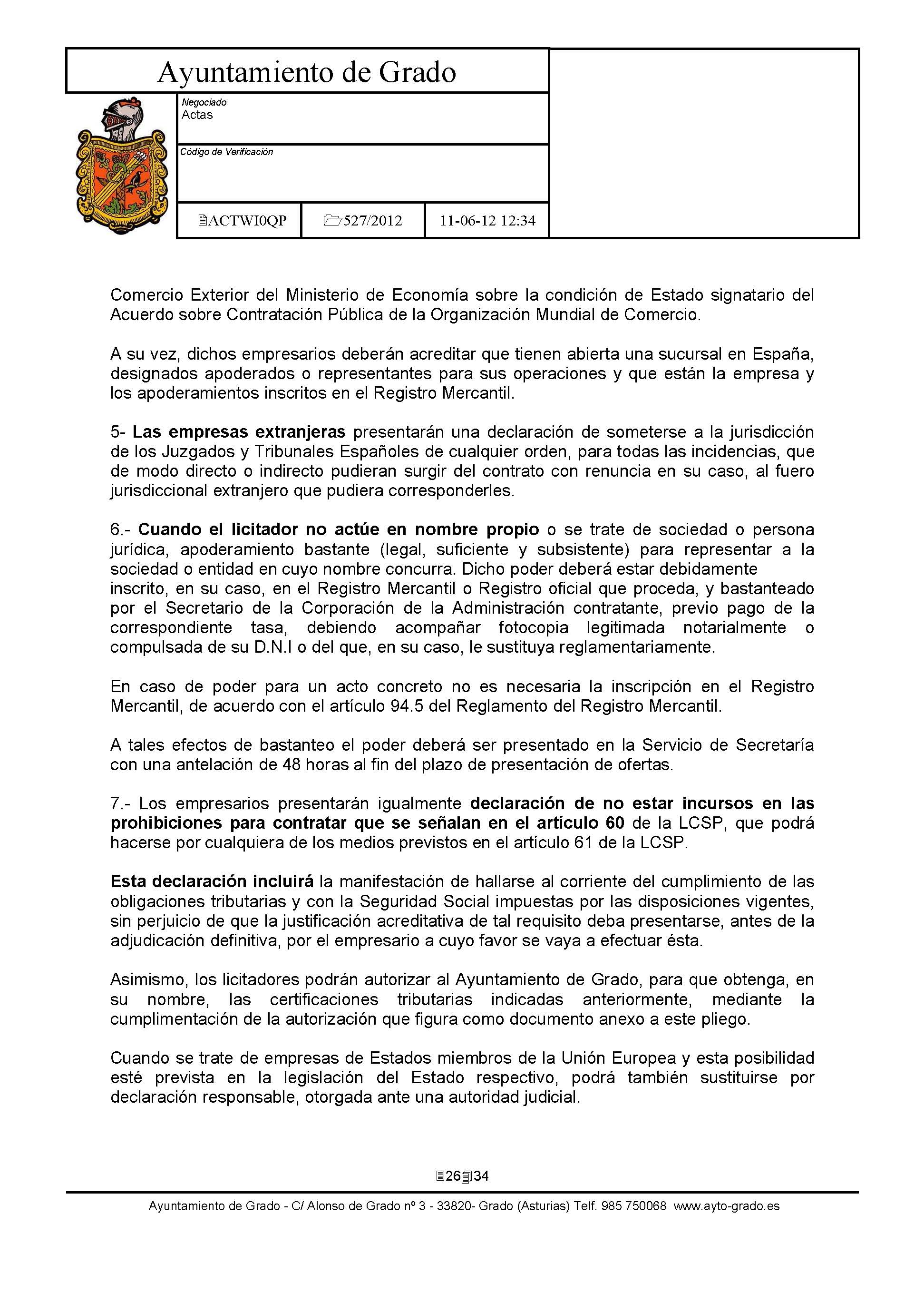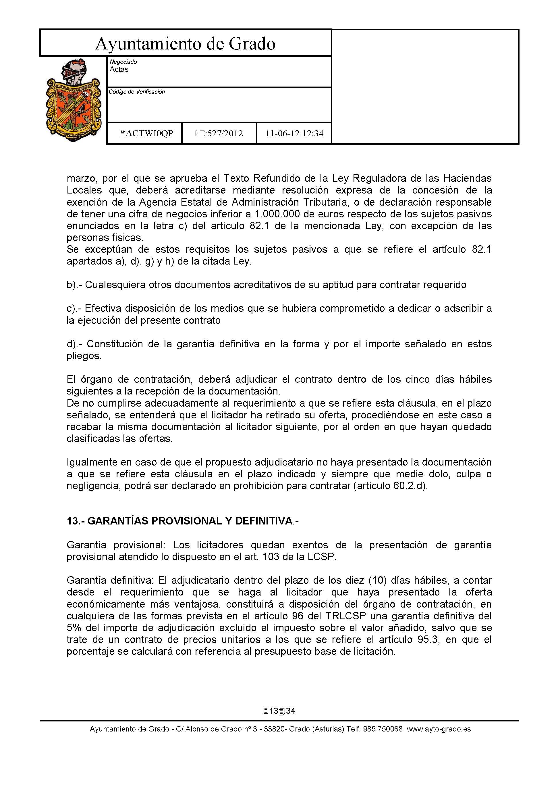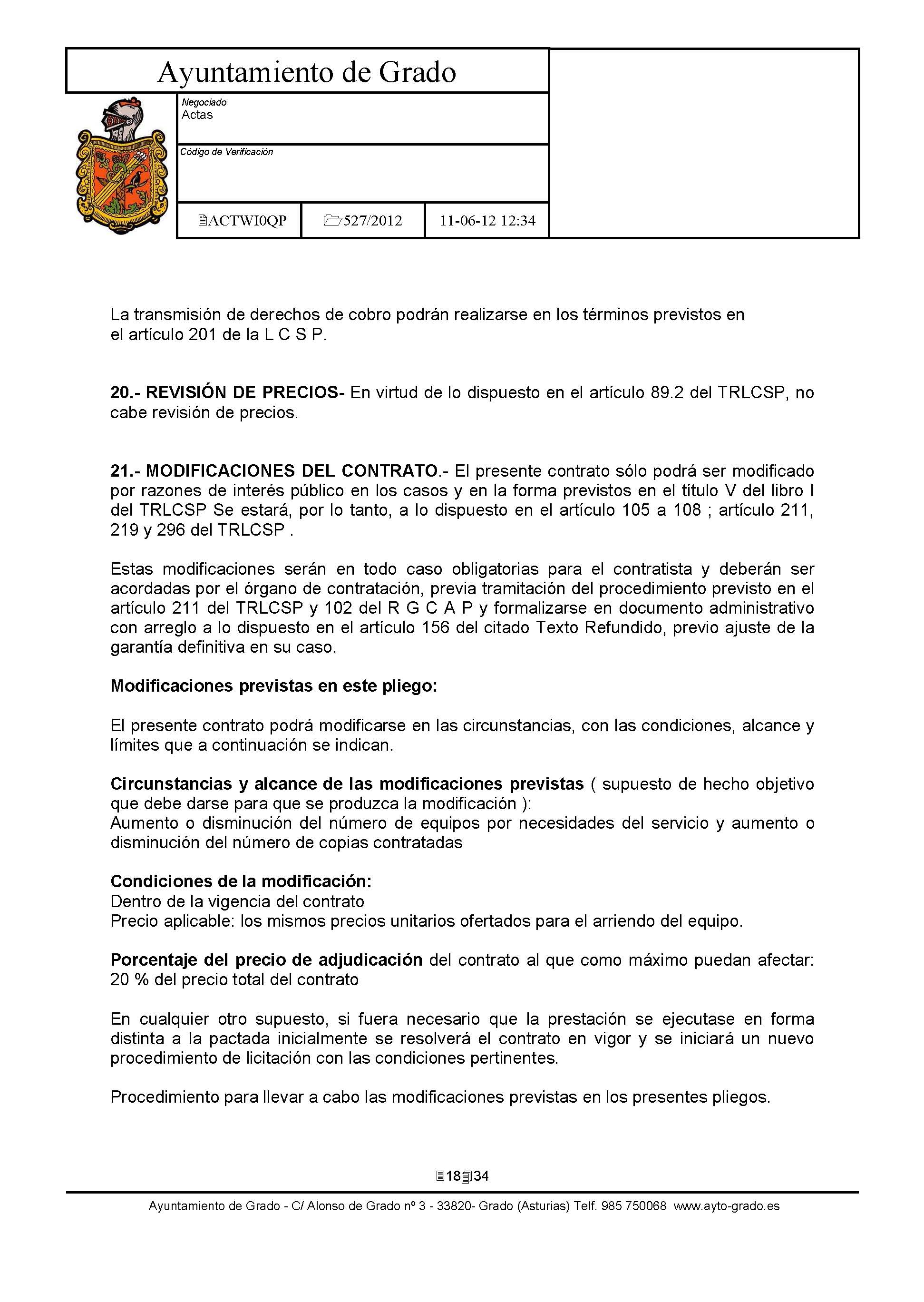 - Pliego de clausulas administrativas: Clausulas Administrativas.