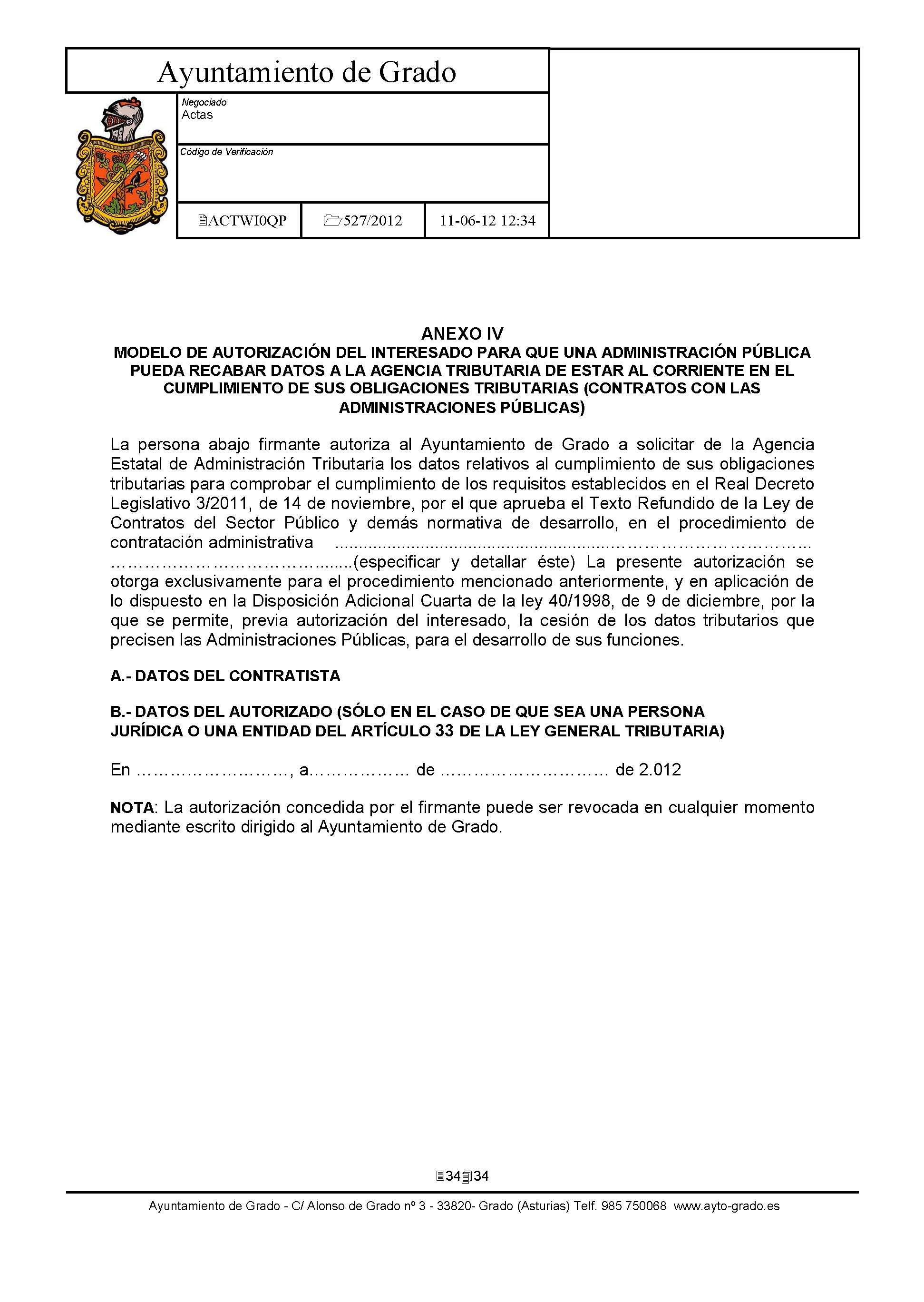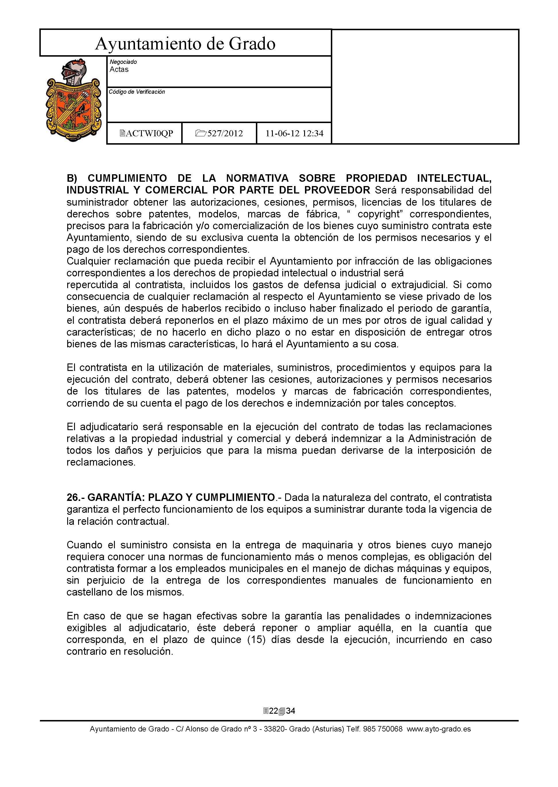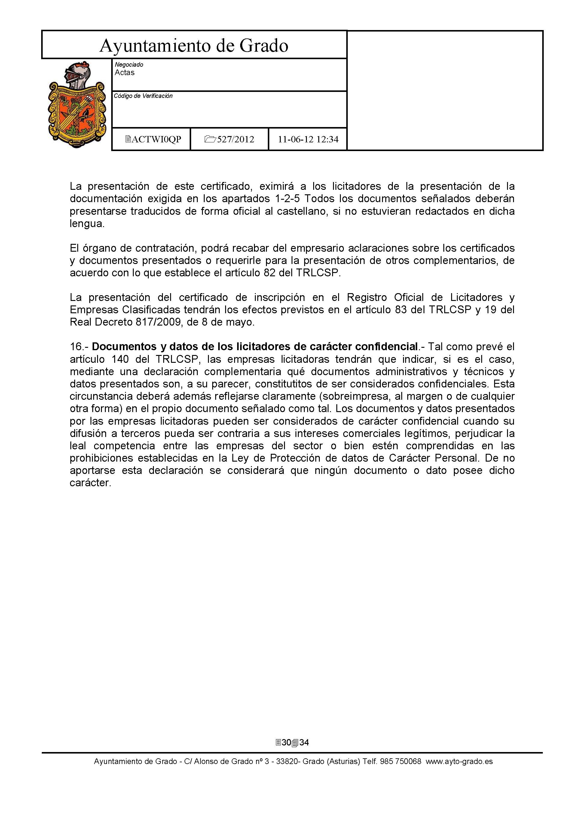 - Resolución o acuerdo de aprobación: Acuerdo de JGL de 15 de junio de 2012.