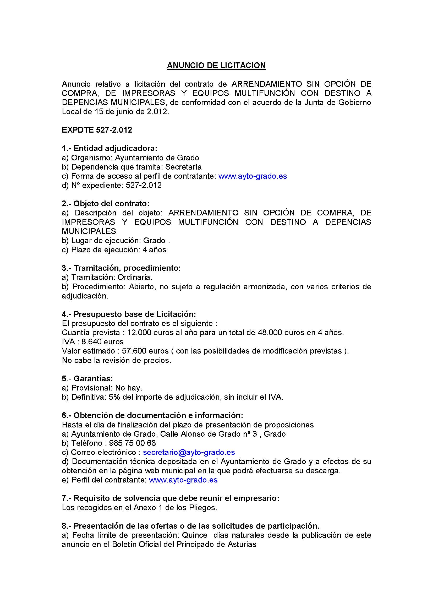 - Fecha de publicación: BOPA de 29 de junio de 2012- Anuncio.